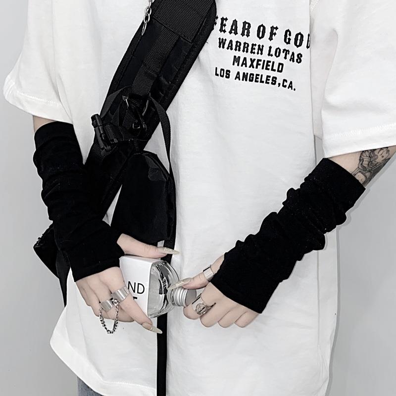 手套亞文化原宿朋克防曬堆堆手套嘻哈黑色白穿指袖套防曬露指手套