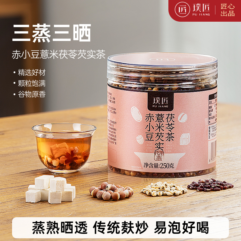 三蒸三曬赤小豆薏米芡實茯苓茶薏米茶沖泡飲炒熟谷物茶代用茶罐裝