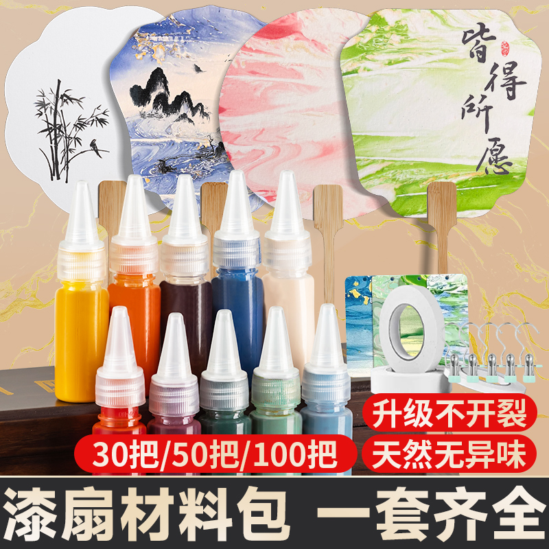 100把批發漆扇材料包全套非遺手工制作diy扇子顏料兒童空白團扇面