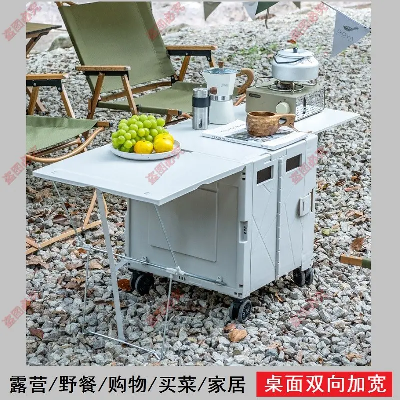 戶外露營野餐推車可折疊便攜擺攤小拉車帶桌板購物買菜拉桿車拖車