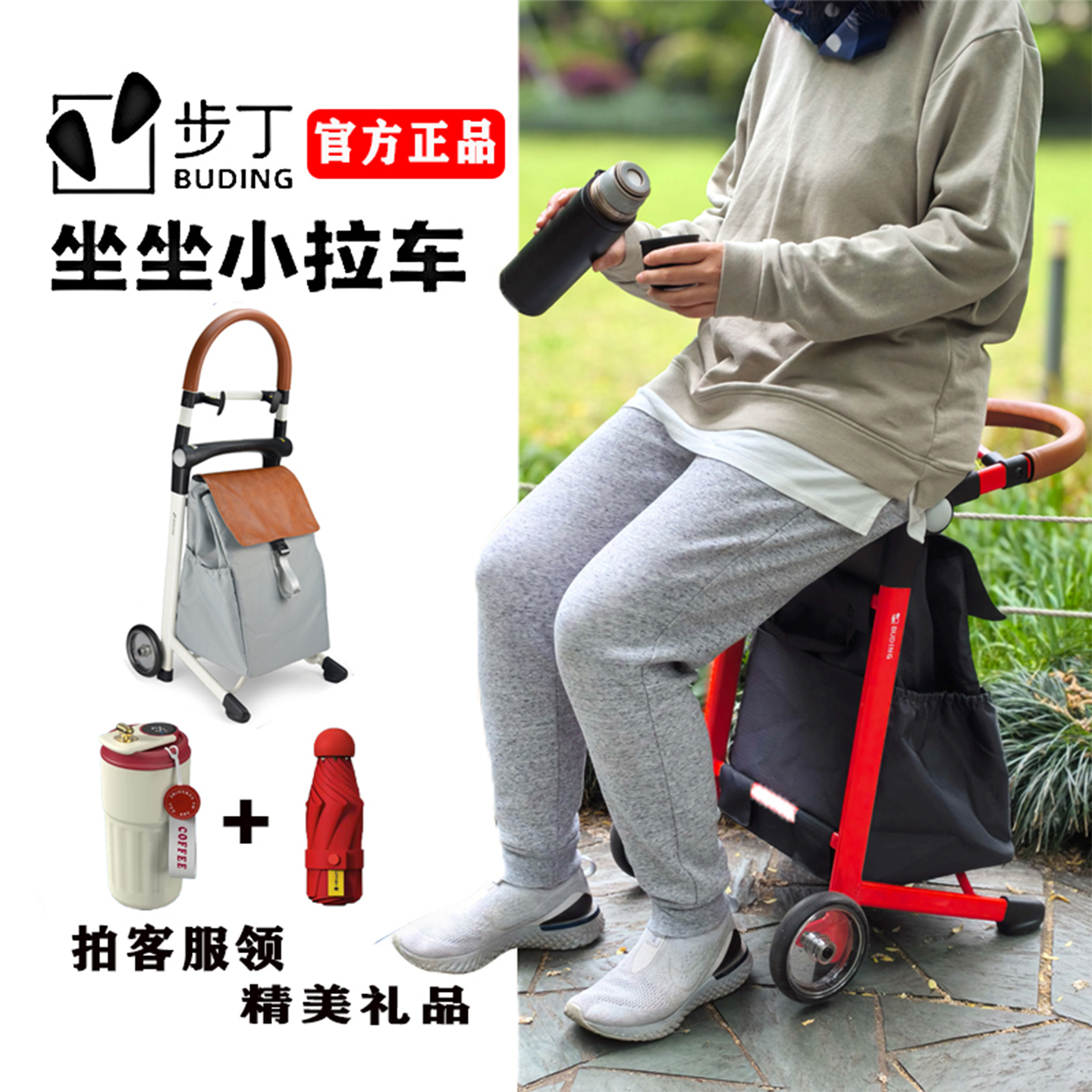 步丁老年人買菜購物新款小拉車鋁合金折疊輕便攜帶座椅子可坐家用