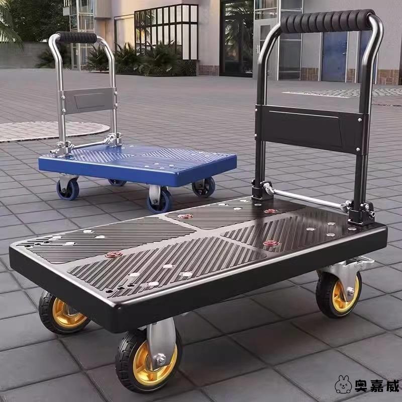 輕音輪加厚平板手搬貨折疊小推車手拖車小型拉貨車搬運便攜