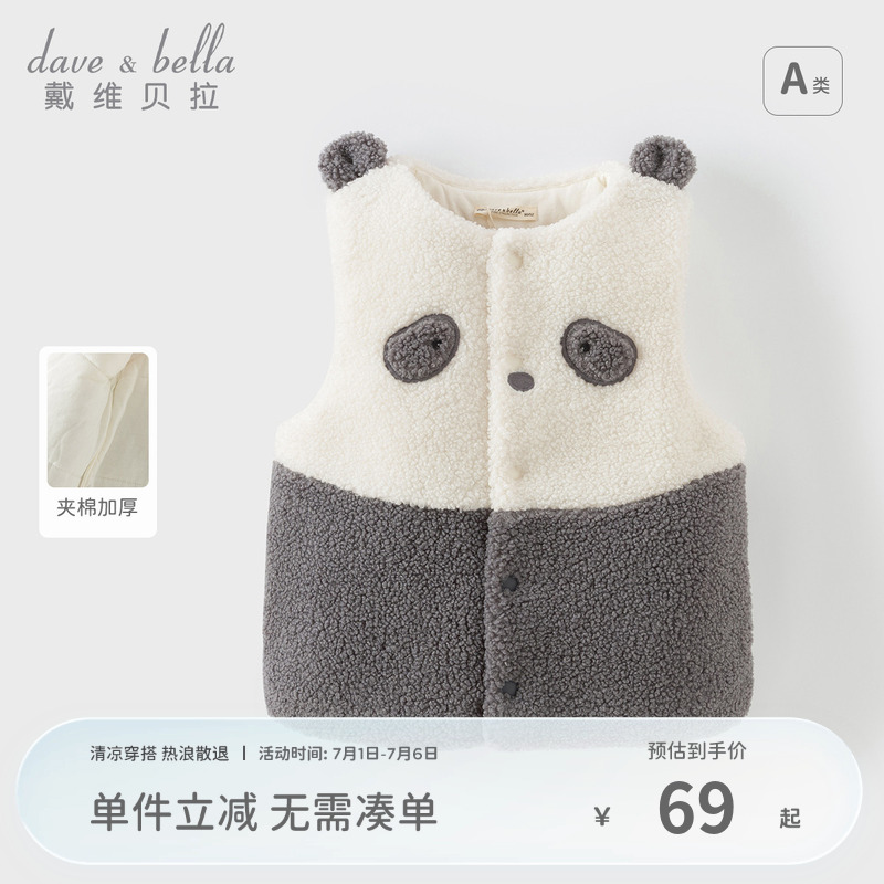 戴維貝拉男童夾棉背心保暖冬裝新款兒童毛絨馬甲寶寶洋氣坎肩上衣