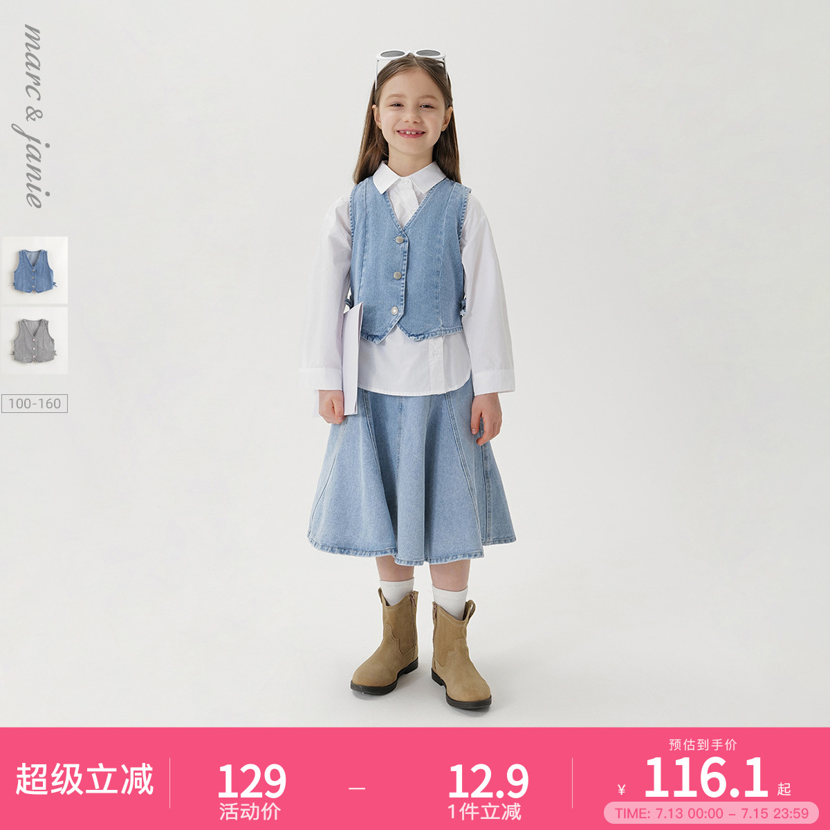 馬克珍妮女童復古V領牛仔馬甲 兒童背心外套2025年春裝新款250133