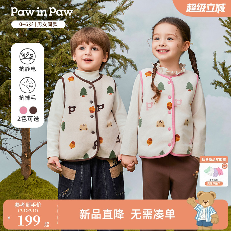 【雙面穿】PawinPaw卡通小熊童裝25年秋季新款男女寶疊穿馬甲可愛