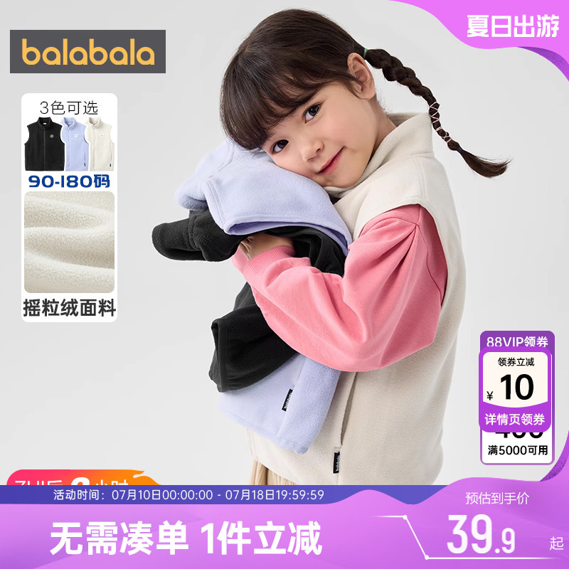 巴拉巴拉兒童馬甲男童女童搖粒絨背心春秋新款童裝寶寶外穿馬夾冬