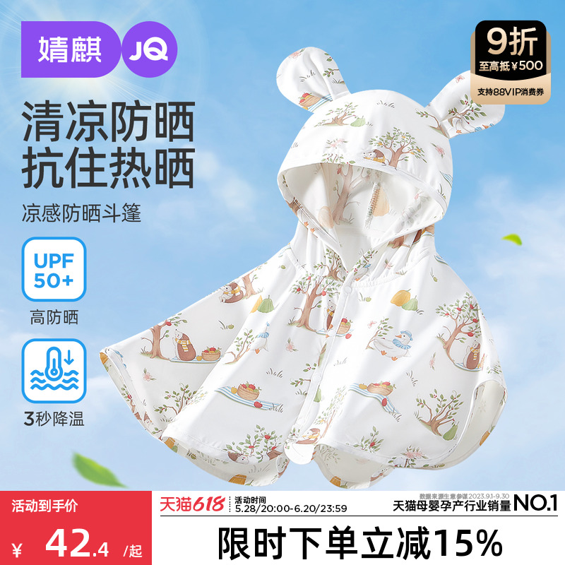 婧麒寶寶防曬衣夏季嬰幼兒防曬斗篷薄款披風清涼防紫外線連帽外套
