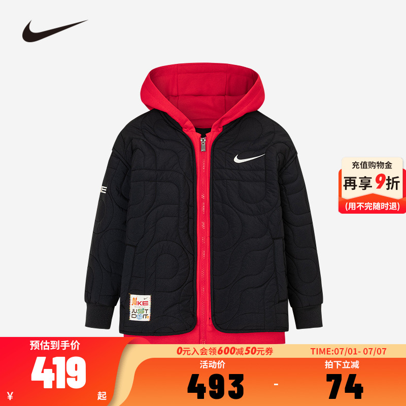 NIKE耐克兒童裝男童棉服2025春季新款保暖外套百搭棉衣NY2512259