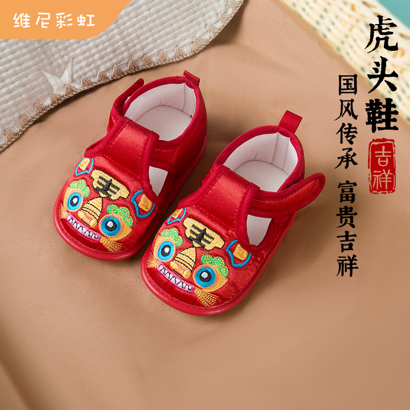 男寶寶周歲虎頭鞋春秋天紅色鞋子嬰兒涼鞋抓周宴百天滿月鞋春款女