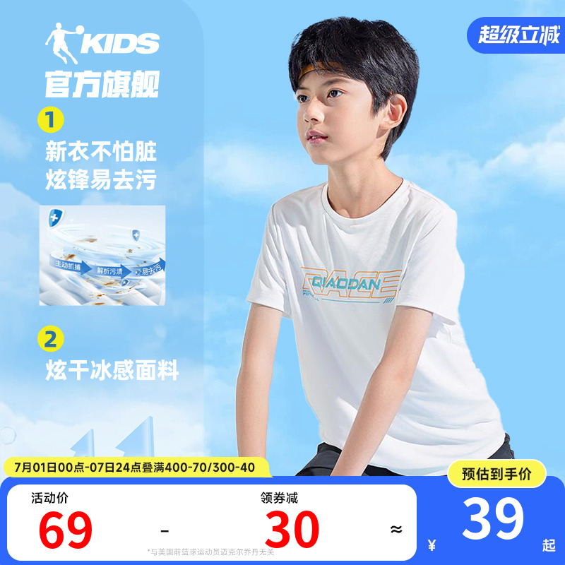 喬丹童裝男童夏裝速干短袖T恤2025夏季新款大童女童運動上衣薄款