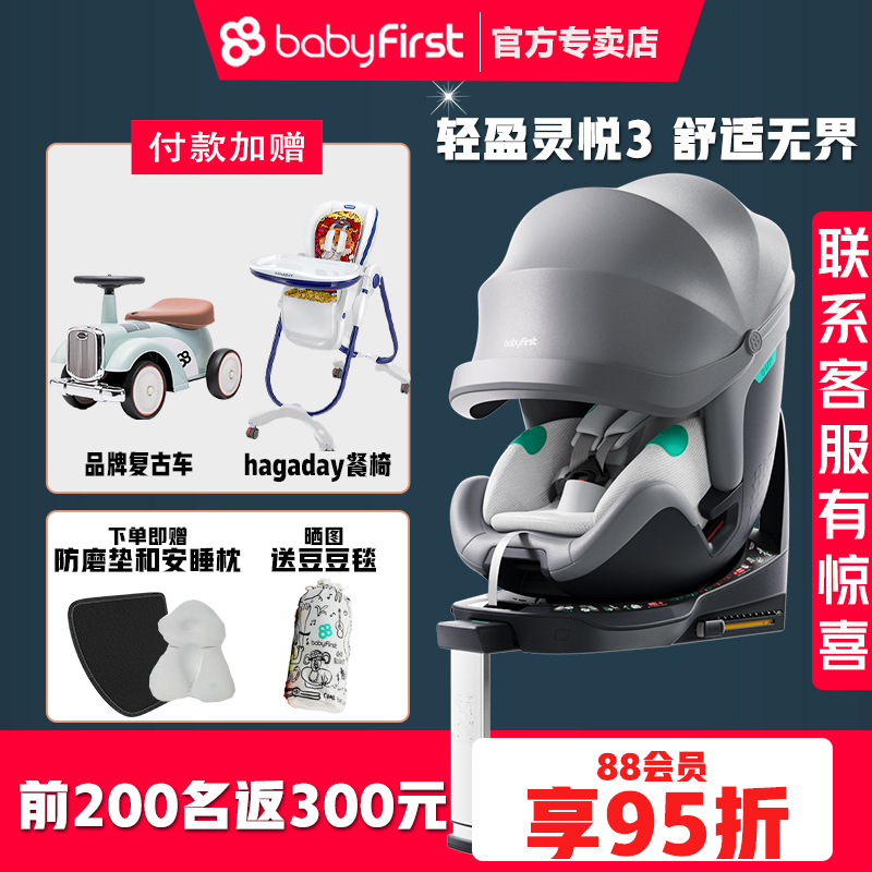 新品babyfirst寶貝第一靈悅3兒童安全座椅車0-7歲寶寶360旋轉透氣