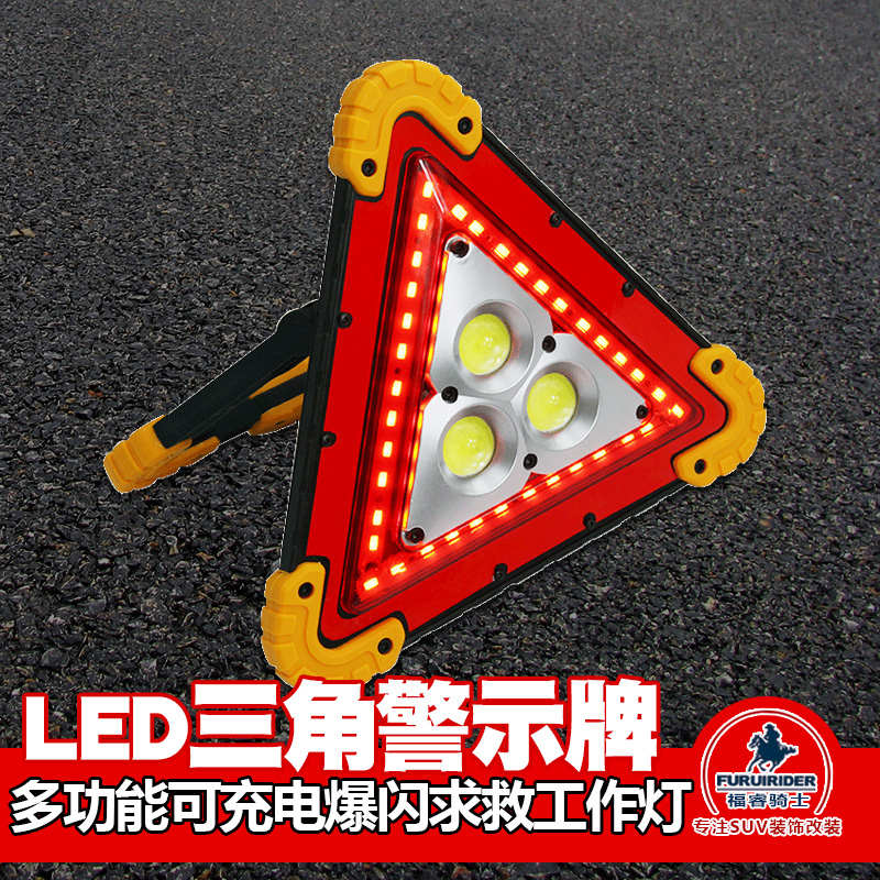 三角架警示燈LED多功能汽車應急燈太陽能車載用品警示牌充電爆閃
