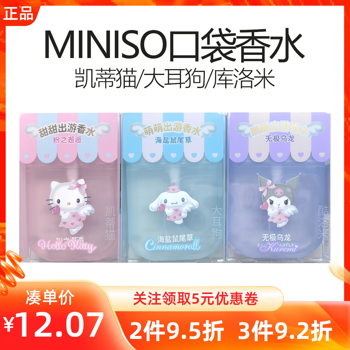MINISO名創優品三麗鷗口袋香水玉桂狗凱蒂貓便攜旅行香氛持久淡香