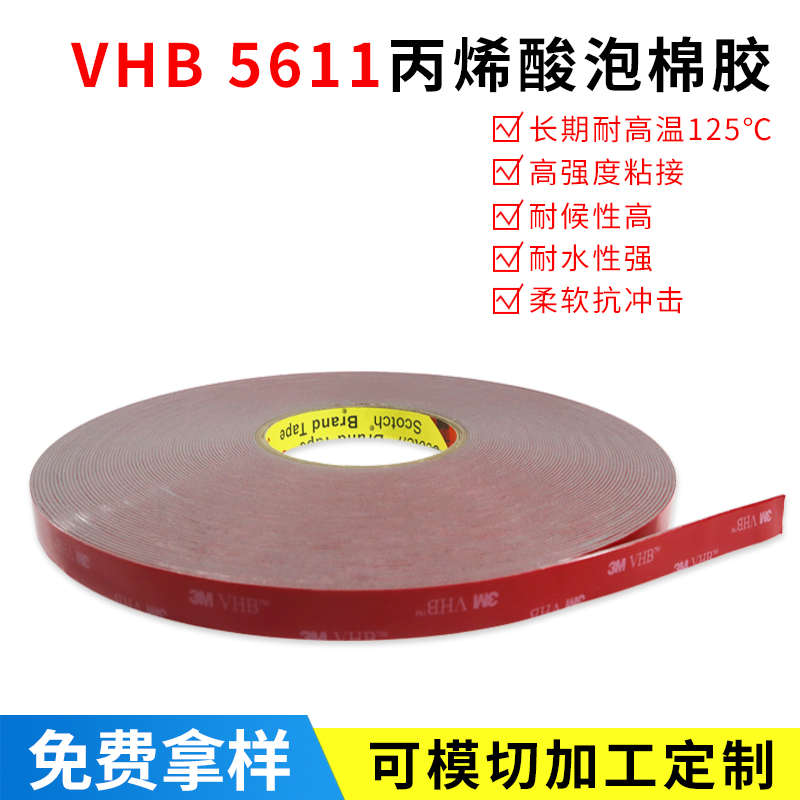 5611泡棉雙面膠帶強力無痕防水耐高溫汽車防撞條金屬銘板專用膠條