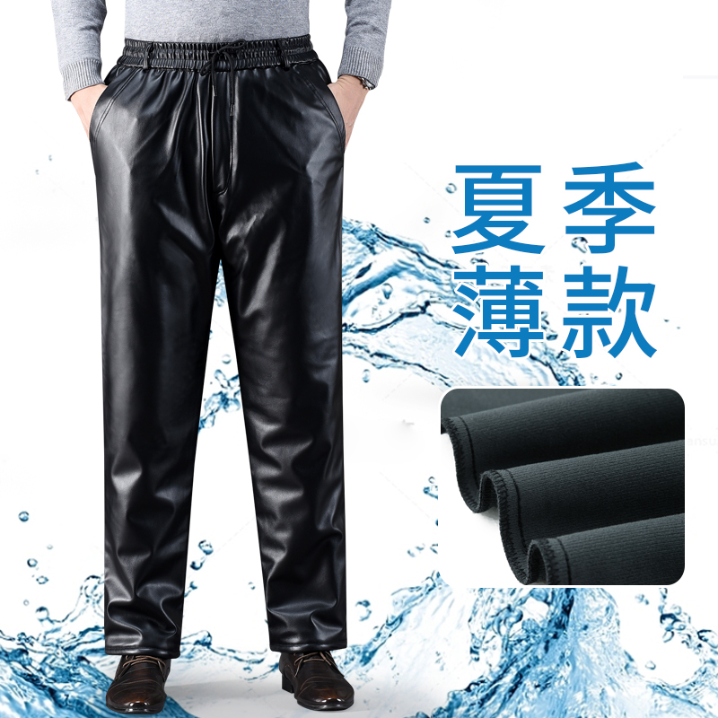 高端真皮皮褲男士2023春秋新款中老年寬松直筒長褲防水耐磨皮褲子