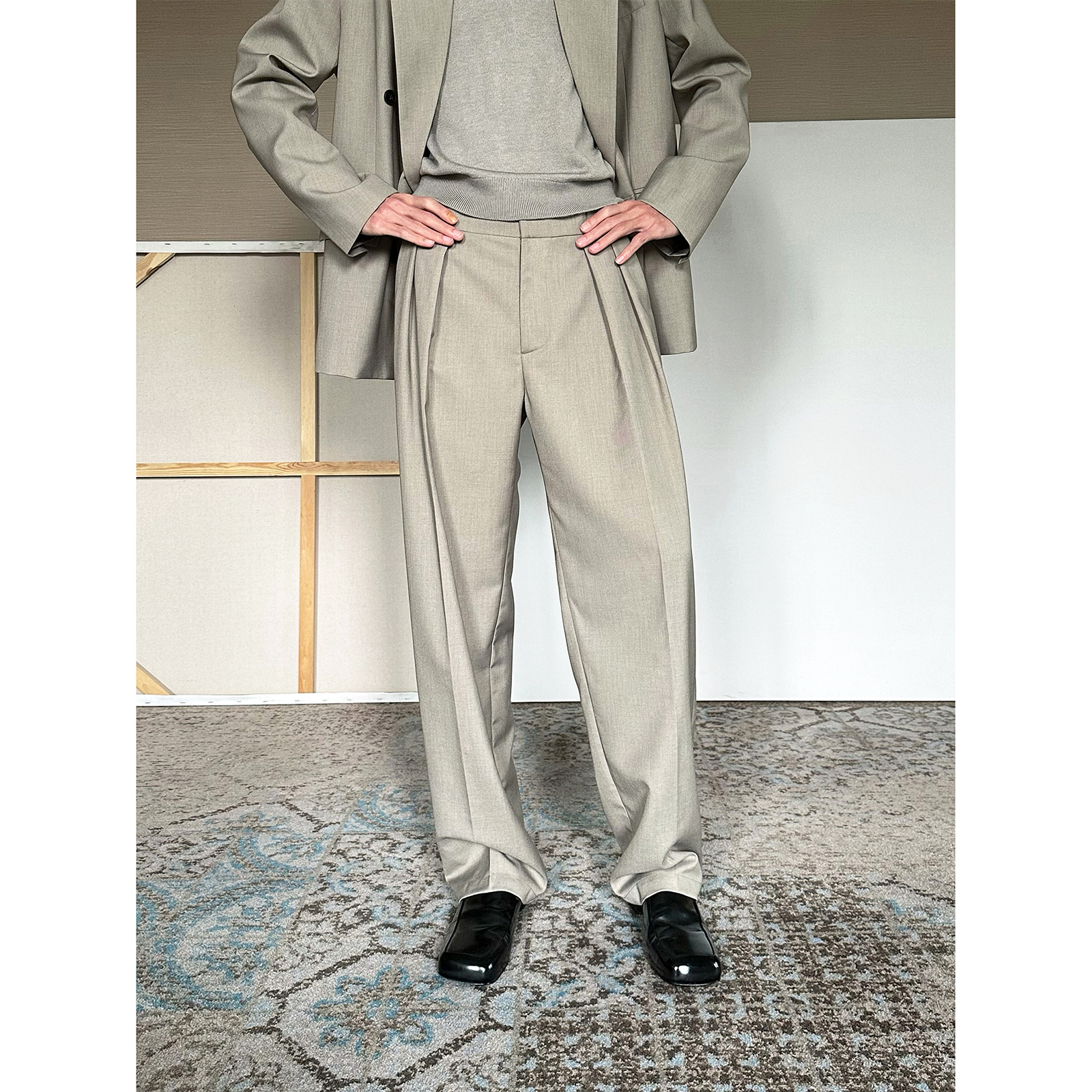 TRENDYWU 經典常青“紈绔”燕麥灰精紡羊毛靜奢雙褶錐形垂感西褲