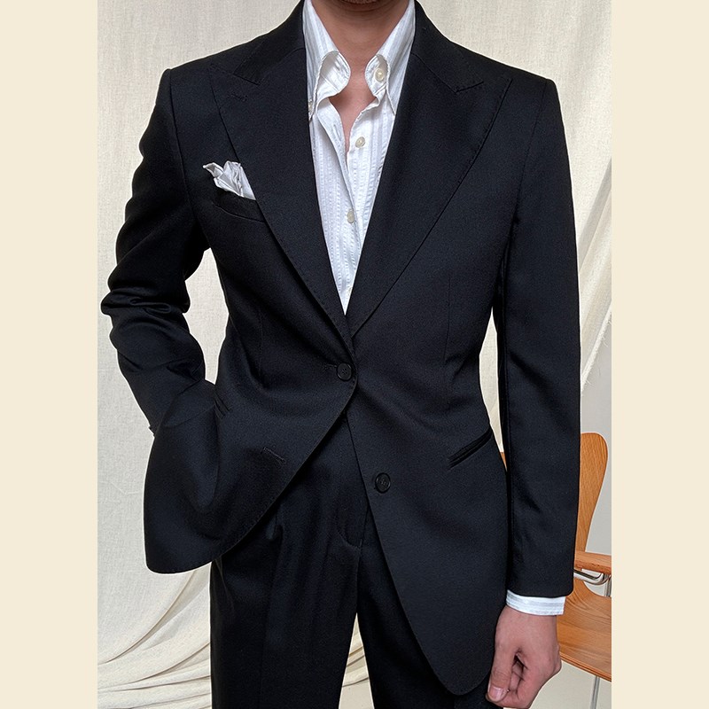 龍叨叨高定系列簡約西裝套裝黑色修身英倫風S商務休閑西服西褲