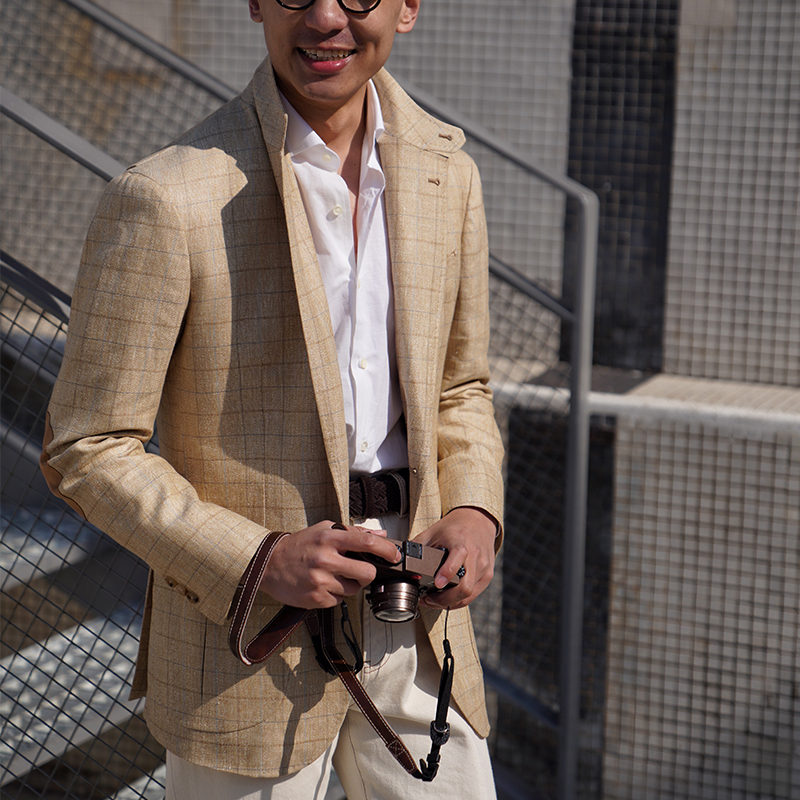 CM那不勒斯皇后金駝色人字紋窗格毛麻混紡獵裝西裝夾克352