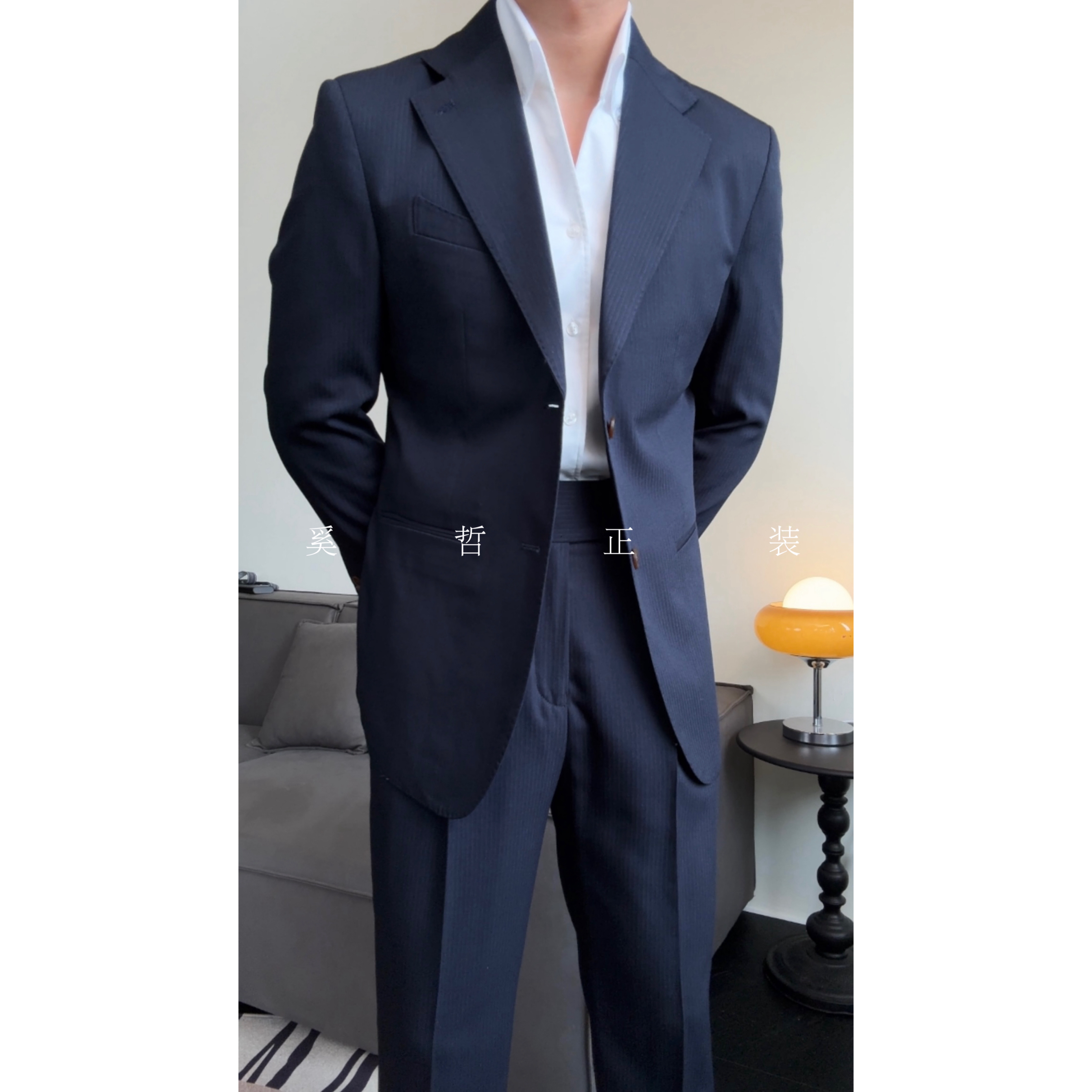 奚哲新款意式商務通勤款男士氣質紳士條紋西服套裝