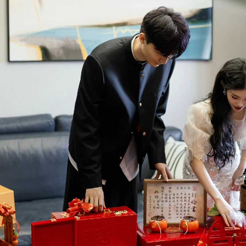 歡喜橙【耀夜】新中式訂婚男西服外套新郎正裝黑色夾克痞帥寬松