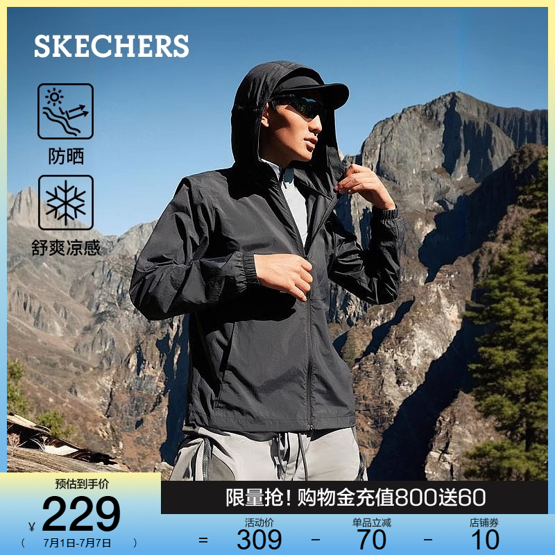 【成毅同款】斯凱奇男款風衣連帽拉鏈短款速干防曬外套百搭上衣夏