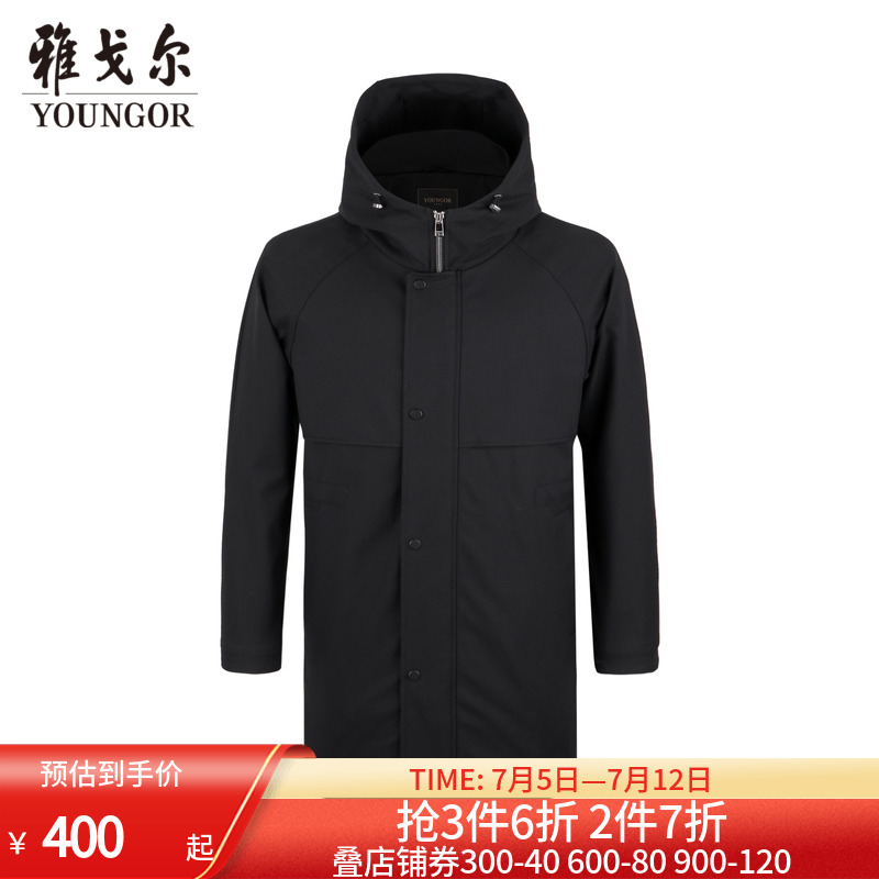 雅戈爾男士棉風衣春季新款官方商務休閑連帽保暖風衣外套男4754