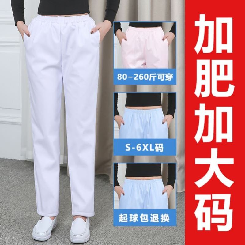 大碼護士褲子男白色加肥加大松緊腰藍色女醫生男護士白大褂工作褲