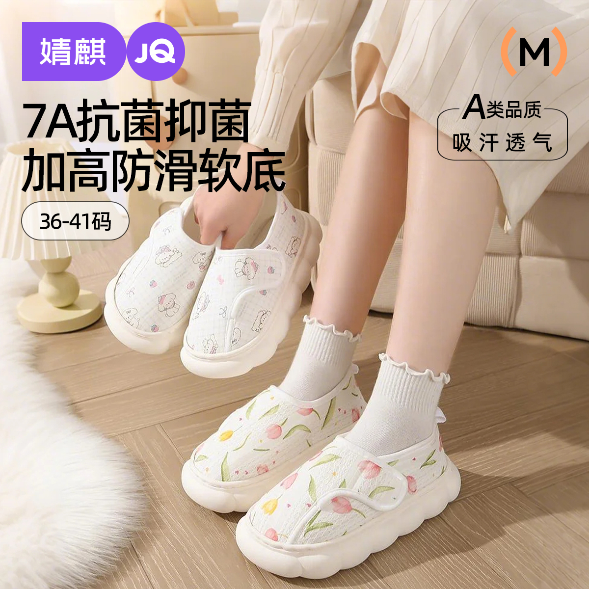 夏季薄款月子鞋女純棉印花透氣軟底孕產婦包跟產后坐月子春秋拖鞋