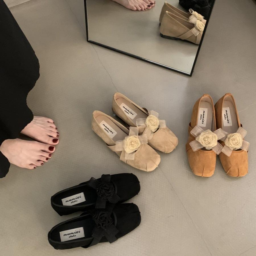 方頭甜美花卉公主鞋法式甜美平底淺口單鞋時尚百搭松緊帶芭蕾舞鞋