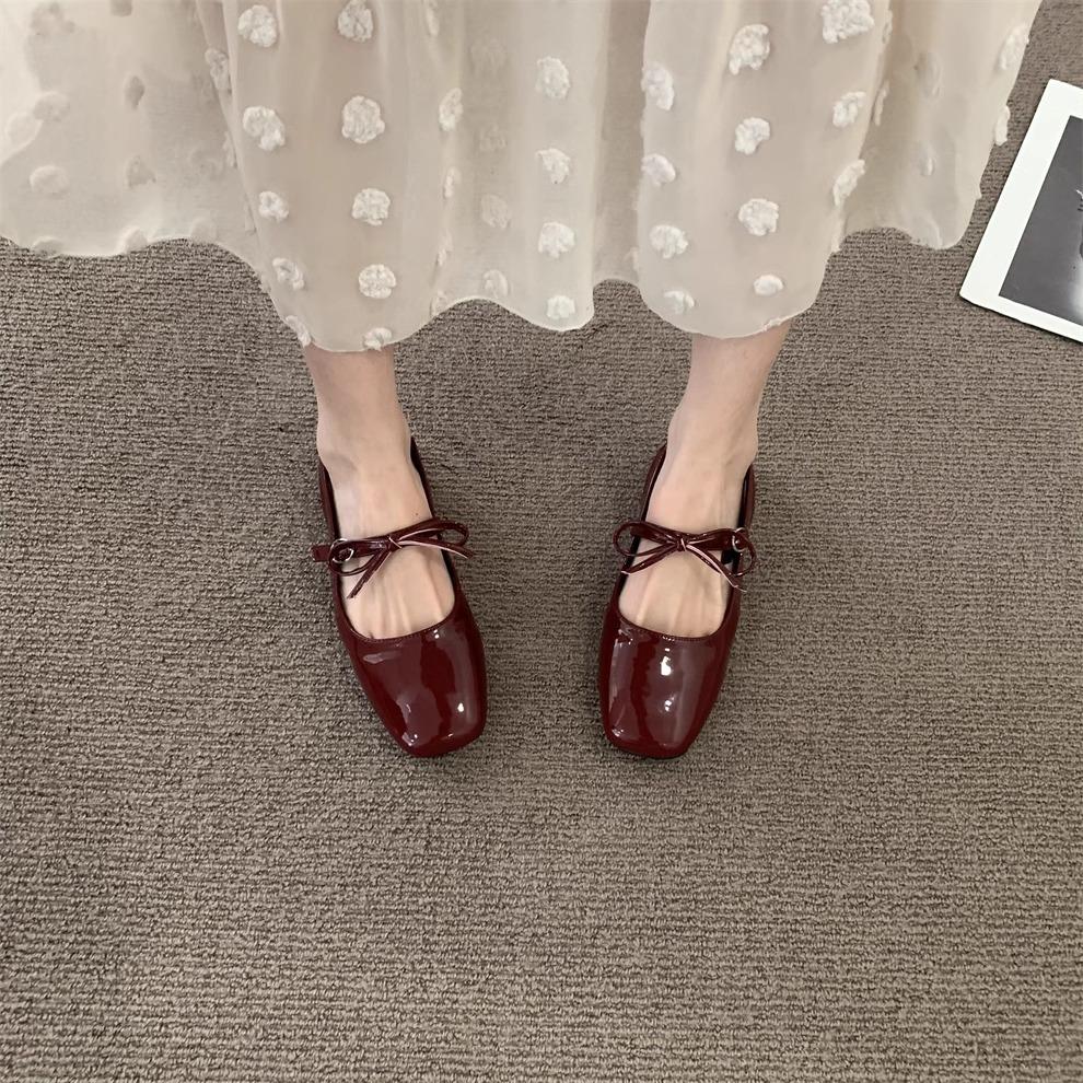 晚風溫柔蝴蝶結淺口低跟瑪麗季新款法式仙女風配裙子后空單鞋定制