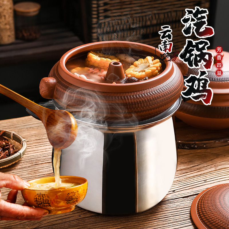 云南建水紫陶汽鍋雞汽鍋家用多層氣鍋雞蒸汽鍋電氣鍋商用砂鍋盜汗