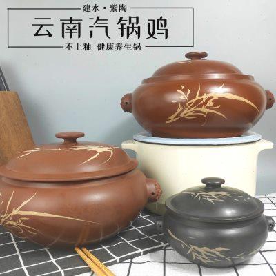 云南建水紫陶汽鍋汽鍋雞專用蒸汽鍋家用盜汗鍋氣鍋多層燉鍋砂鍋批