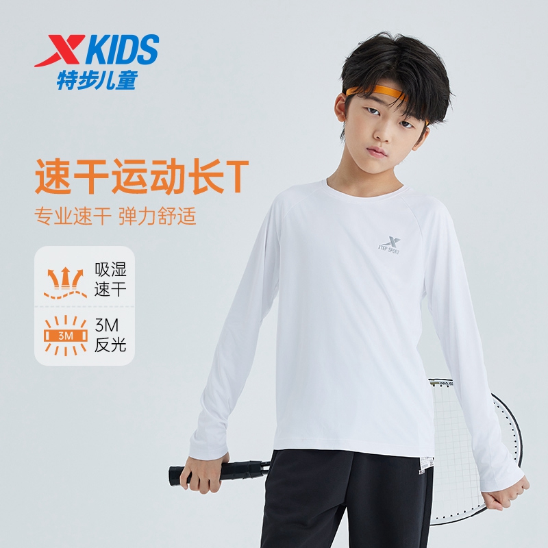 特步童裝男童針織長袖春秋季新款兒童長T中大童休閑百搭女童上衣