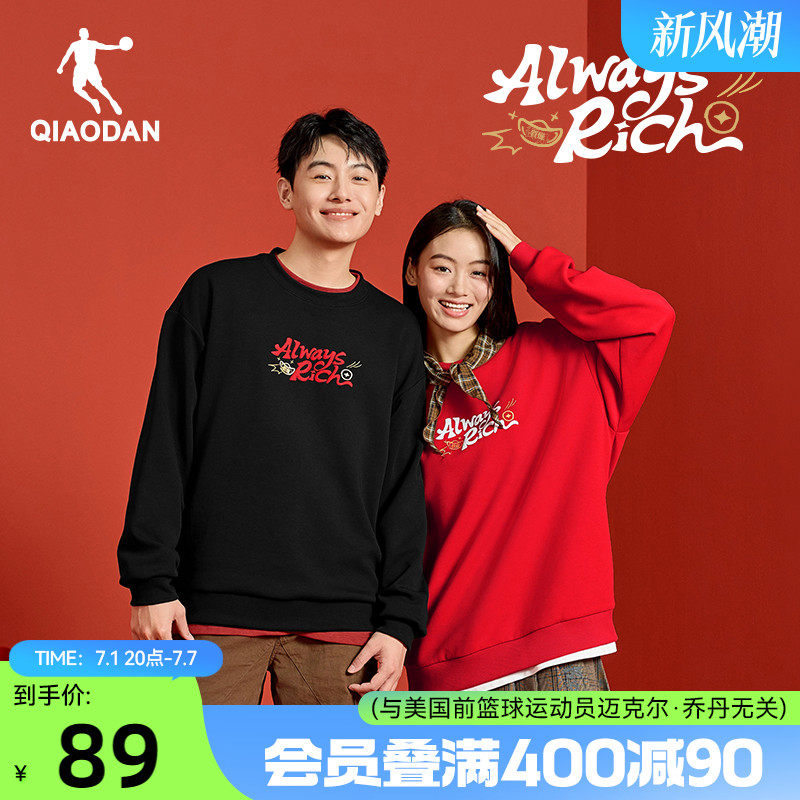 喬丹圓領衛衣男女同款春季新款日日有財新年紅色本命年情侶裝上衣