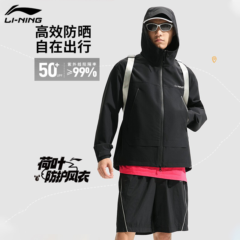 李寧荷葉防護風衣|秋季新款防潑水防曬外套女情侶戶外登山夾克男