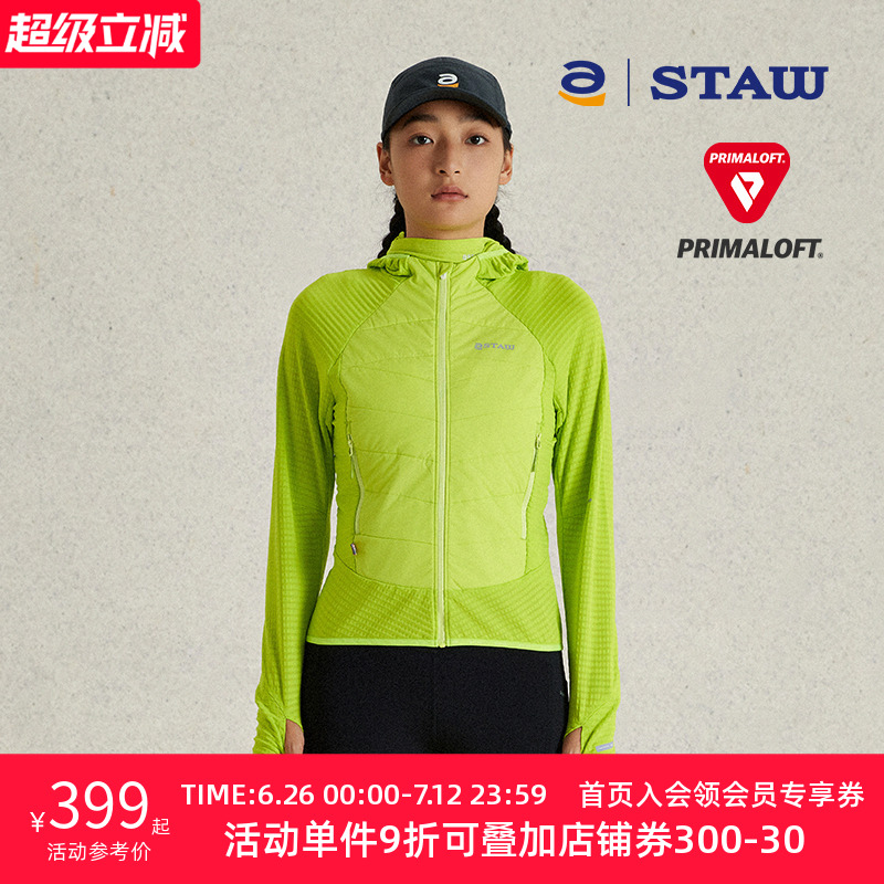 STAW世拓連帽跑步棉衣加絨保暖戶外40g金標P棉3A抗菌運動外套棉服