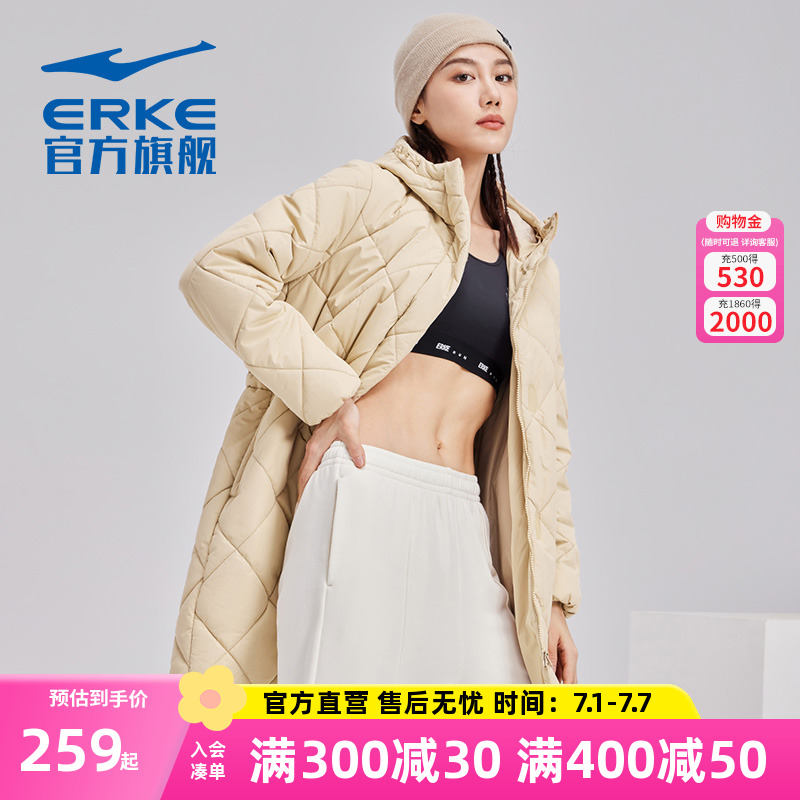 鴻星爾克棉服春季新款女士中戶外長款防風保暖棉衣休閑外套女