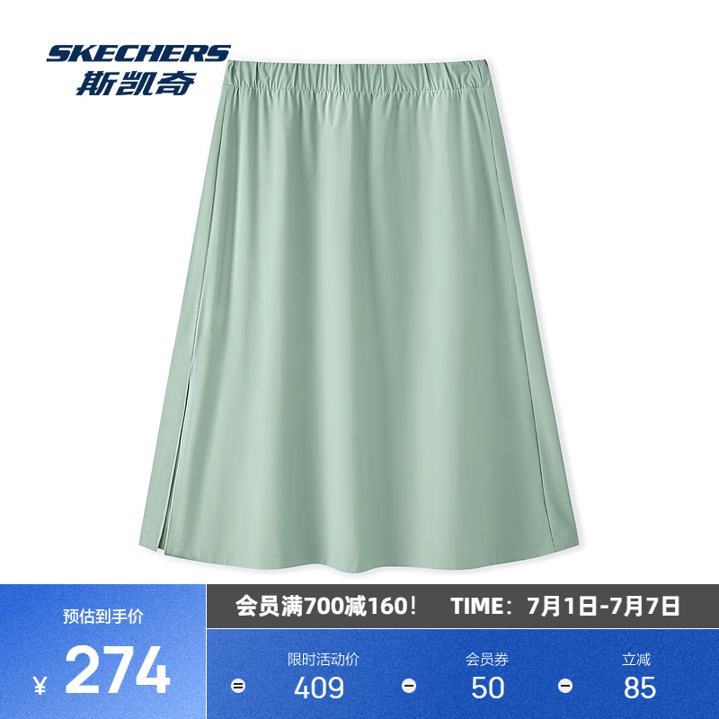 斯凱奇2025新款系經典簡約時尚休閑裙開叉半身裙夏季涼感運動裙