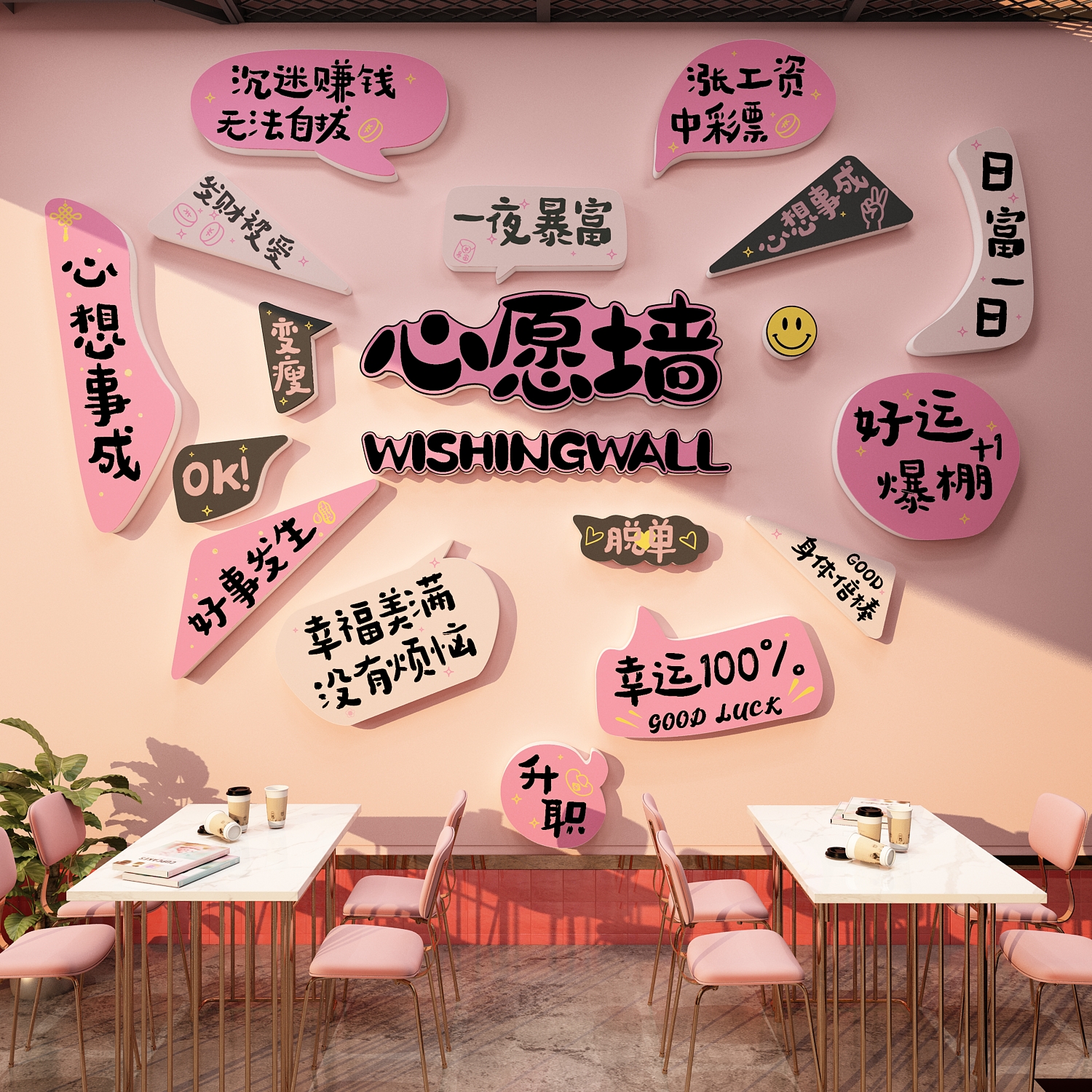 網紅奶茶店墻壁裝飾面貼紙畫留言板心許愿布置拍照區打卡造背景墻