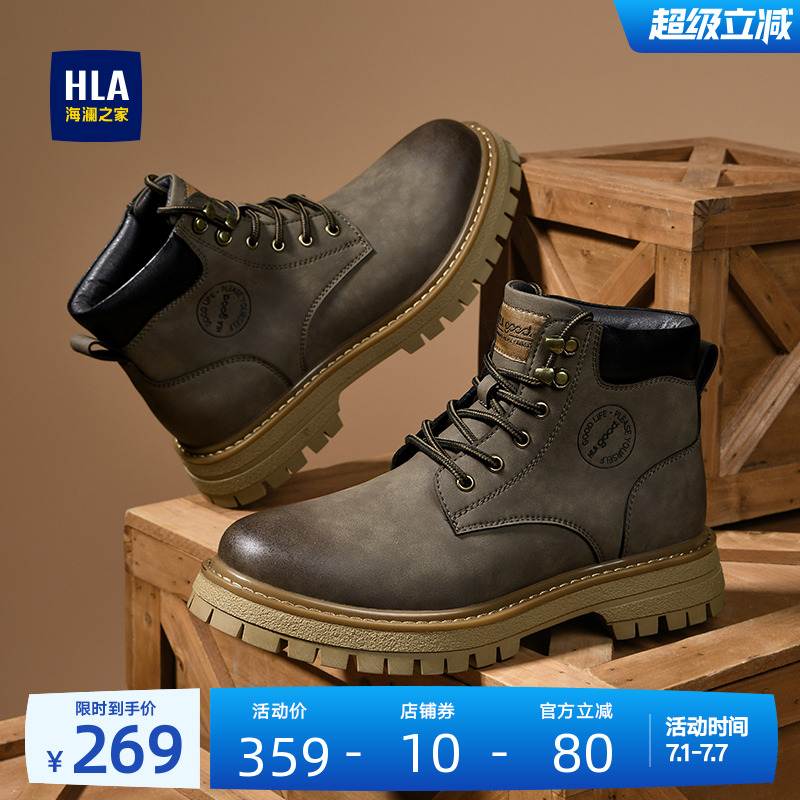 HLA/海瀾之家男鞋新款夏季復古高幫戶外休閑大黃靴透氣百搭工裝靴
