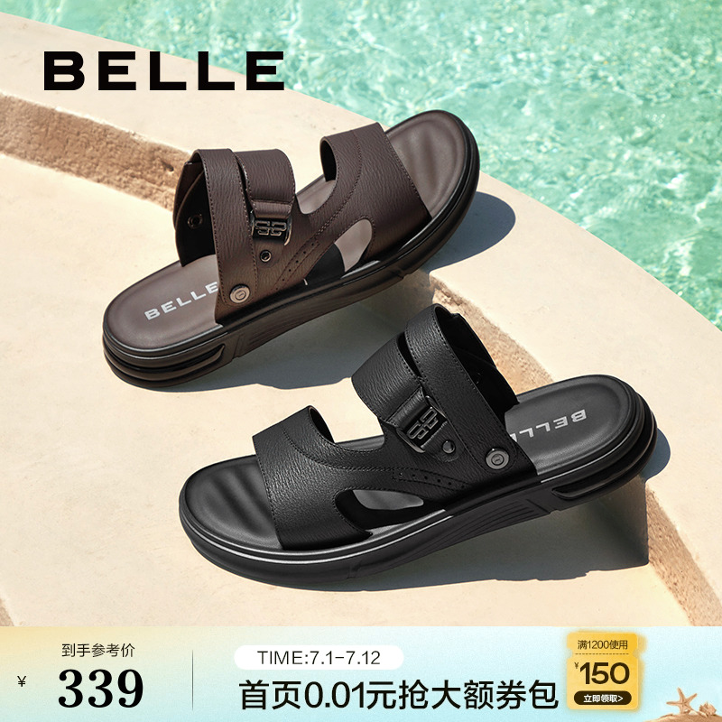 百麗男鞋戶外涼拖鞋兩穿夏季真牛皮休閑沙灘爸爸涼鞋男款8GE01BL4
