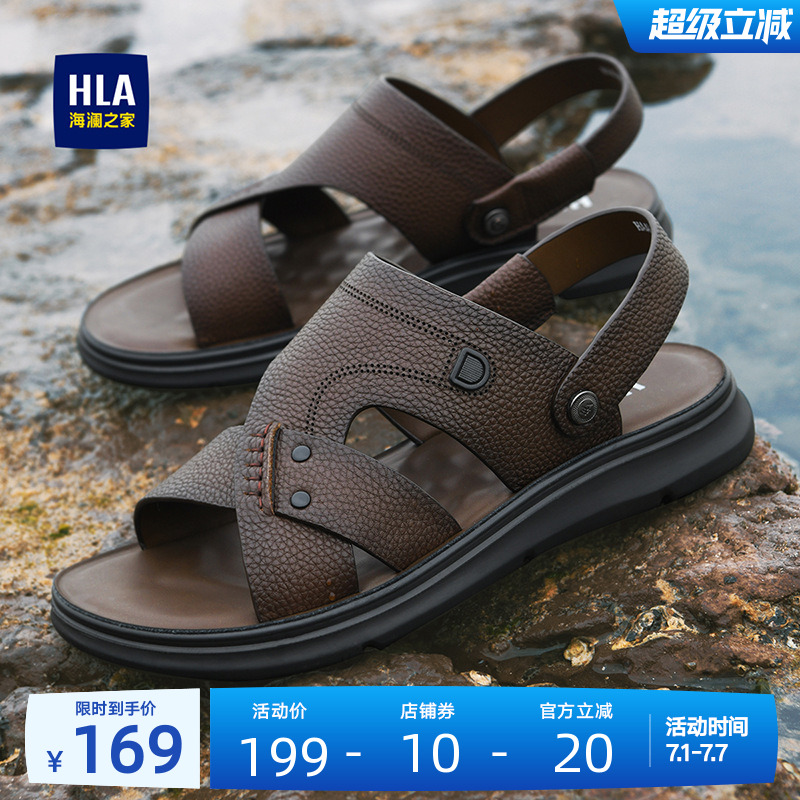 HLA/海瀾之家男鞋拖鞋夏季透氣真皮外穿涼鞋父親鞋休閑中年沙灘鞋