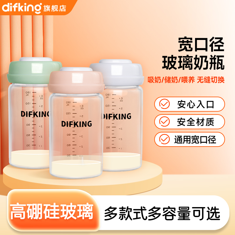 DIFKING玻璃儲奶瓶母乳保鮮瓶玻璃杯集奶器寬口徑奶瓶寶寶存奶瓶