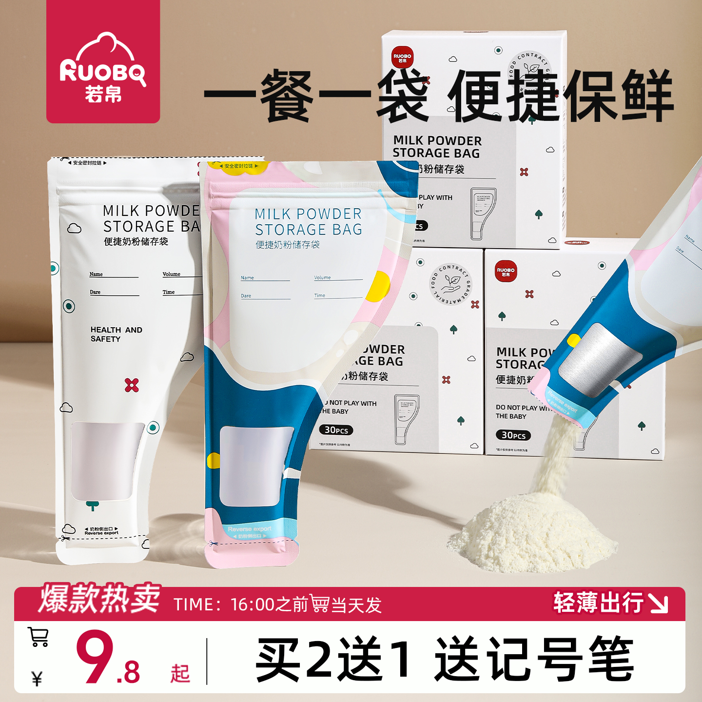 330片奶粉袋便攜一次性外出分裝奶袋寶寶保鮮密封抗菌儲存盒
