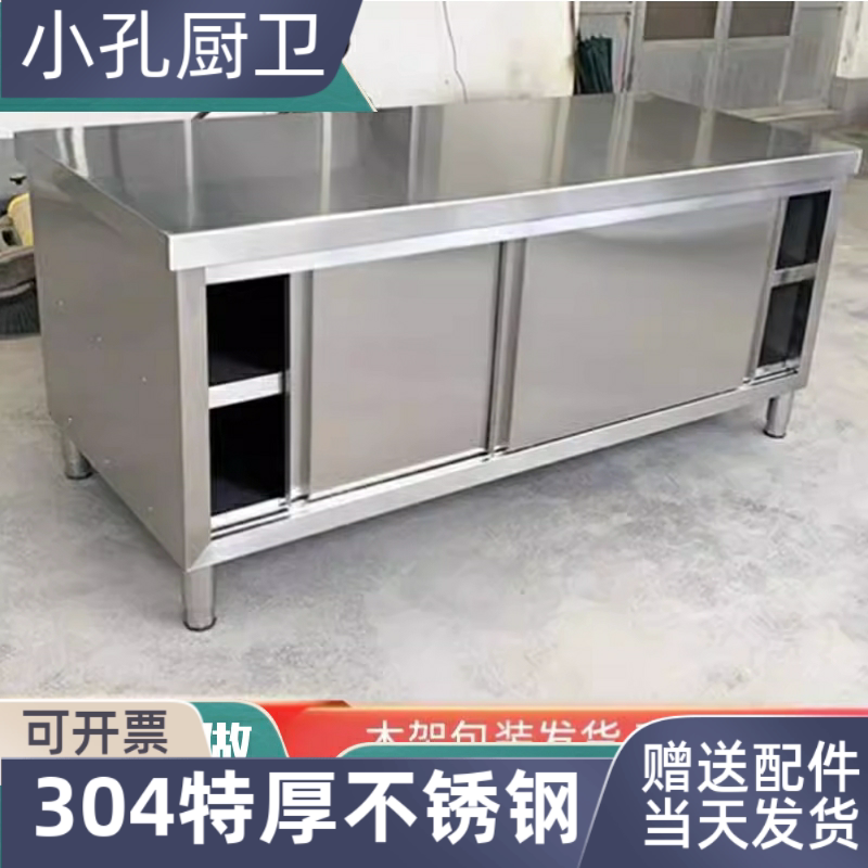 304不銹鋼推拉門工作臺廚房和面儲物柜打荷操作臺切菜桌商用案板