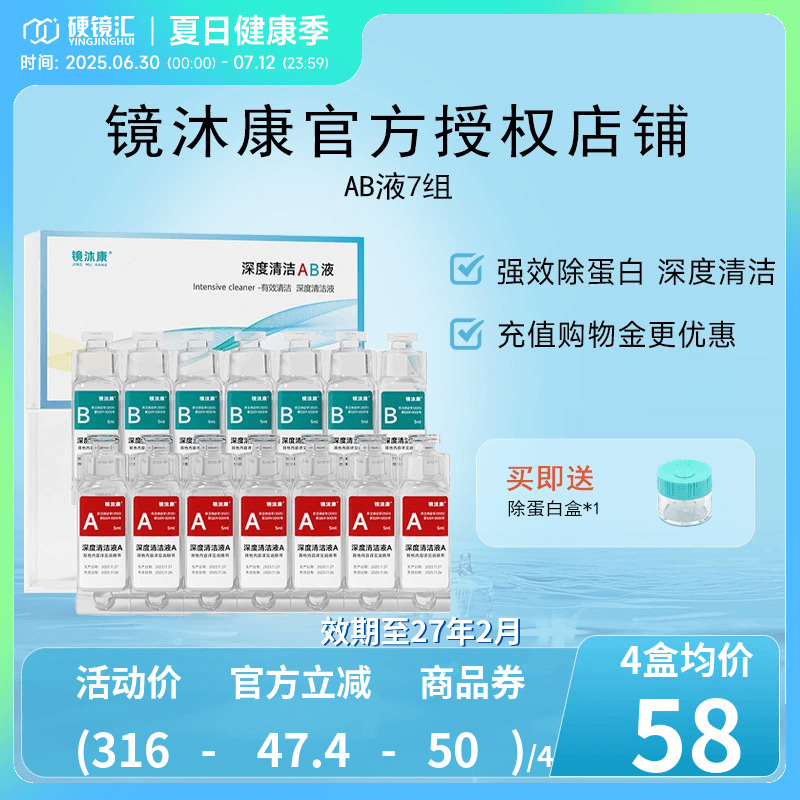 鏡沐康AB液7組深度除蛋白OK鏡角膜塑形鏡硬性隱形眼鏡護理清潔劑