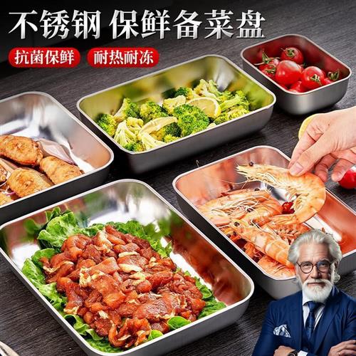 不銹鋼備菜盤火鍋配菜盤備餐方盤托盤子長方形保鮮收納野餐便當盒