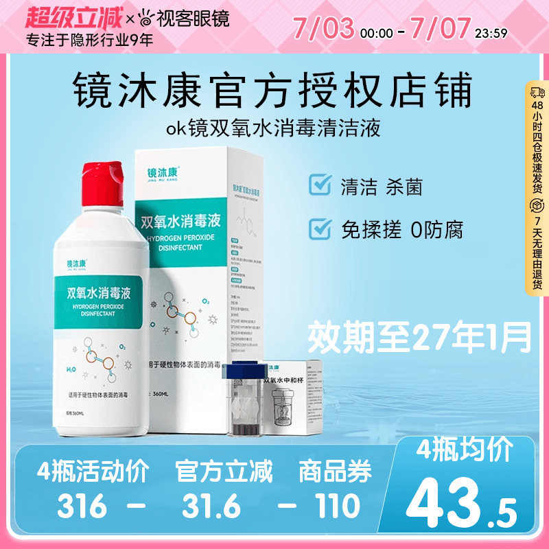 鏡沐康OK鏡雙氧水硬性角膜塑形鏡RGP除蛋白清潔殺菌消毒液360ml