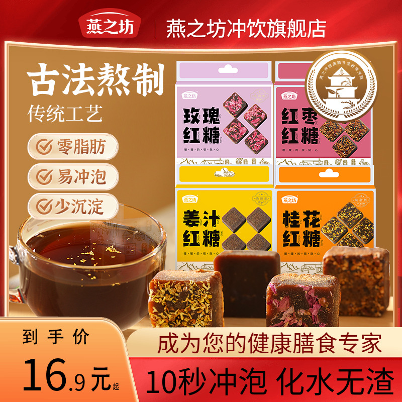 燕之坊甘蔗紅糖塊黑糖姜汁玫瑰紅糖姜茶單獨小包裝216g