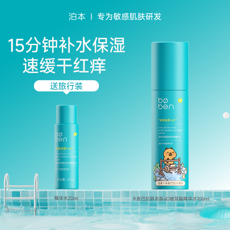 泊本6D玻尿酸保濕精華水100ml溫和舒緩補水舒敏濕敷水女敏感肌